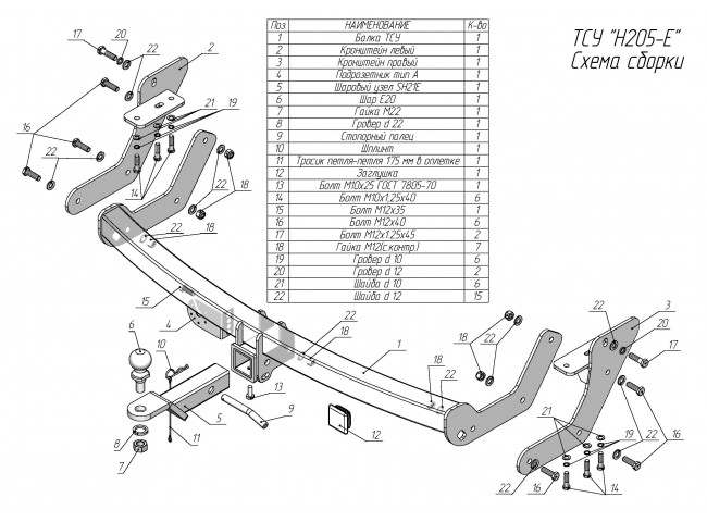 H205-E ТСУ для HYUNDAI SANTA FE CLASSIC (SM) (ТАГАЗ) 2001-2006, 2007-2012 ( ШАР ВСТАВКА 50*50 Характеристики